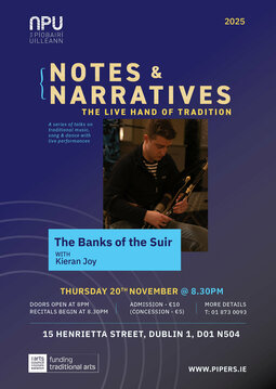 Notes & Narratives will take place at Na Píobairí Uilleann, 15 Henrietta Street, Dublin 1, starting at 8:30pm on Thursday 20th November 2025.
